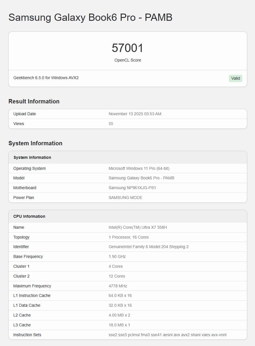 В базе данных Geekbench был замечен новый, еще не анонсированный ноутбук Samsung Galaxy Book6 Pro. Интерес представляет его начинка: это первый тест топового процессора Intel следующего поколения Core Ultra X7 358H из линейки Panther Lake. Судя по результатам, Intel готовит колоссальный скачок производительности встроенной графики.