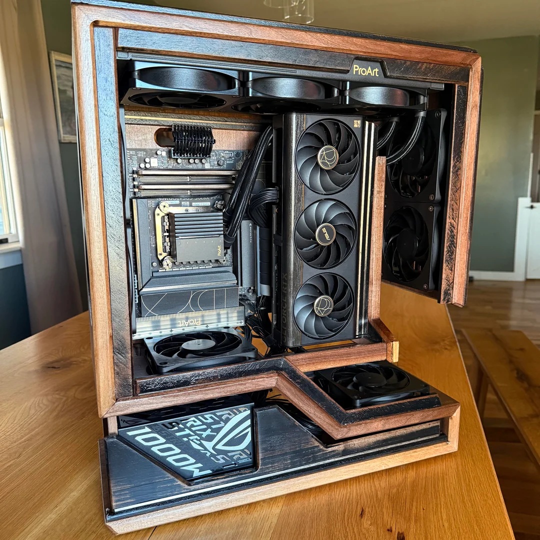 Пользователь создал кастомный ПК с ASUS ProArt RTX 5080 и корпусом ручной работы из дерева
