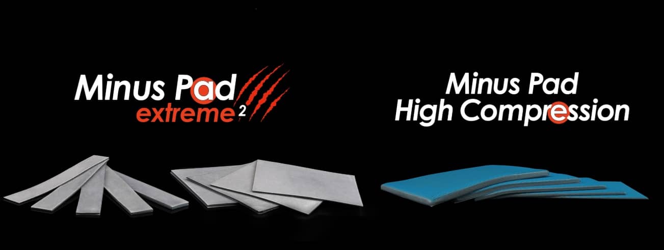 Параллельно представлена серия Minus Pad High Compression — термопрокладки с исключительно высокой сжимаемостью, предназначенные для случаев, когда требуется компенсировать неравномерные перепады высот между компонентами. Это решение идеально подходит при модификации видеокарт (например, установке водоблока), поскольку одна прокладка может заменить несколько разной толщины.