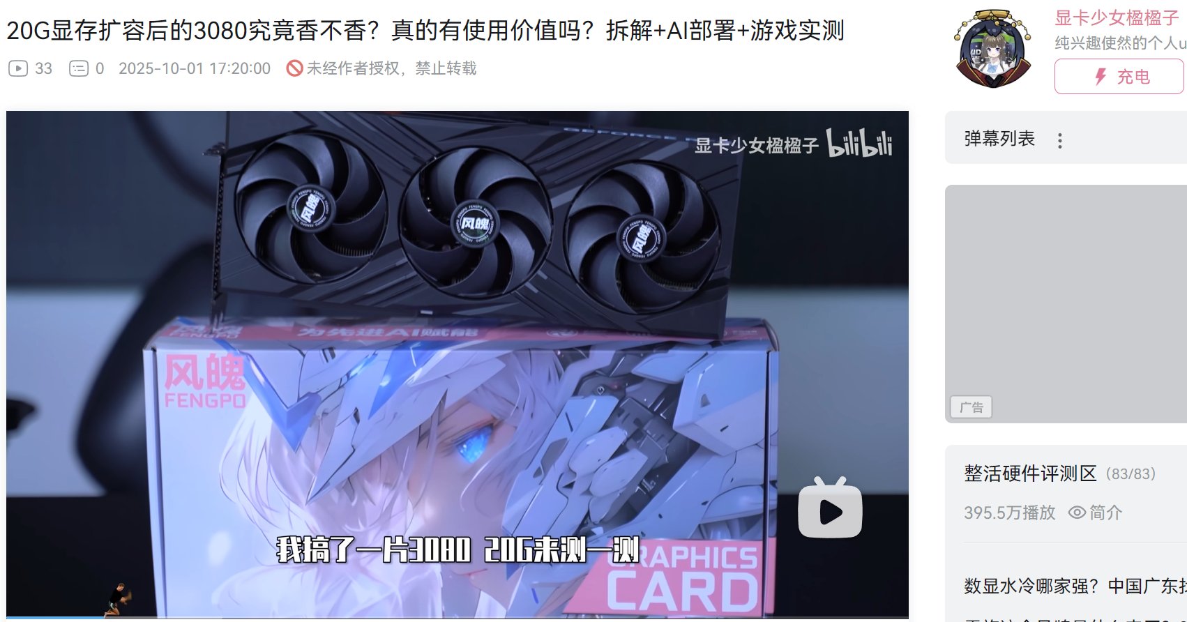Китайский бренд Fengpo (风魄) выпустил видеокарту RTX 3080 с увеличенным объёмом памяти20 ГБ GDDR6X, что выходит за рамки официальной спецификации NVIDIA. Модель производится компанией Shenzhen Chuangyu Cloud Intelligence и уже попала в поле зрения энтузиастов на китайской платформе Bilibili.