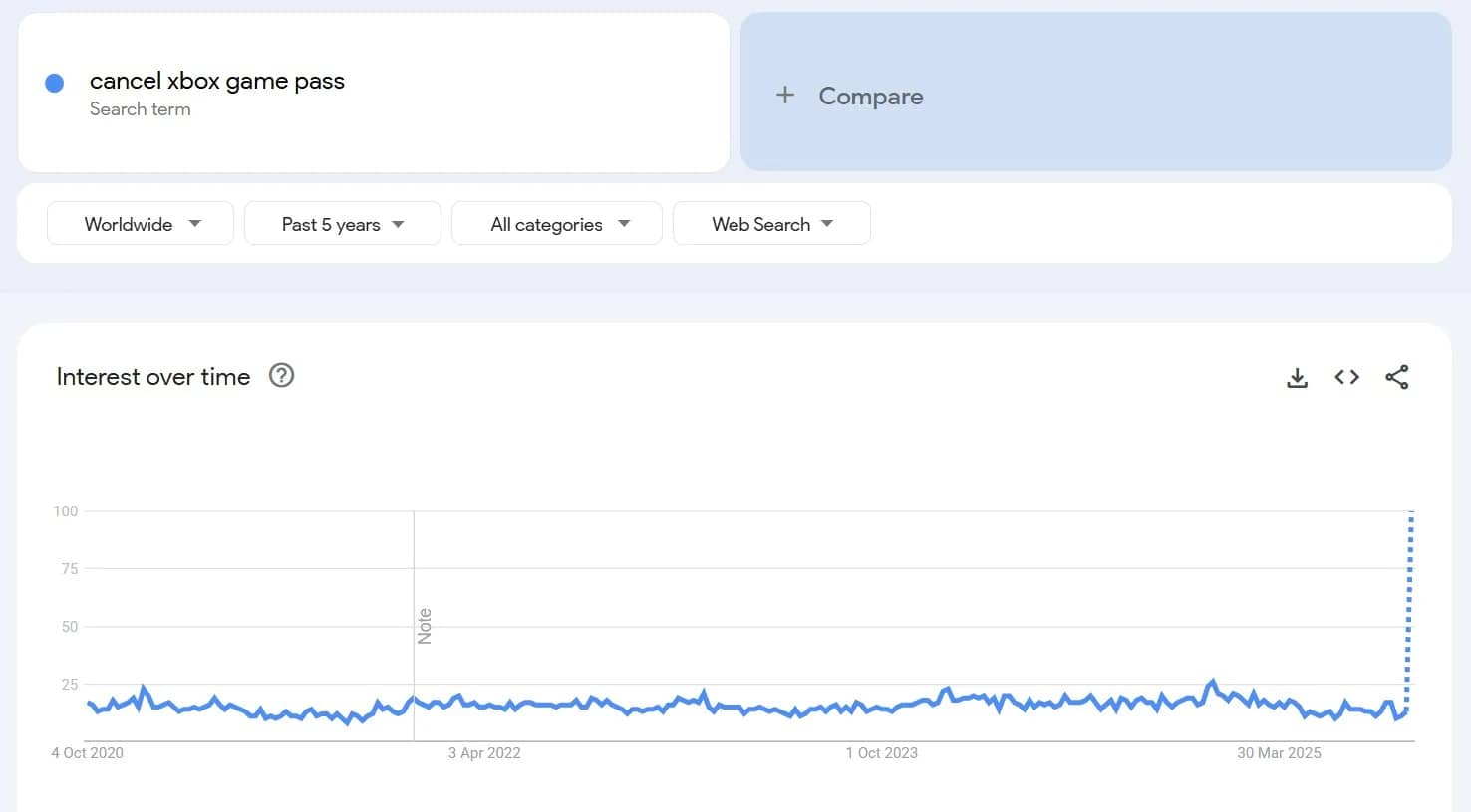 По данным Google Trends, в день пика было зафиксировано 100 запросов по фразе "cancel Xbox Game Pass", тогда как предыдущий максимум составлял 34 запроса в сутки. Предыдущий всплеск был зафиксирован на фоне массовых увольнений, однако нынешняя волна почти в три раза превышает ту ситуацию, что указывает на резко возросшее недовольство среди игроков.
