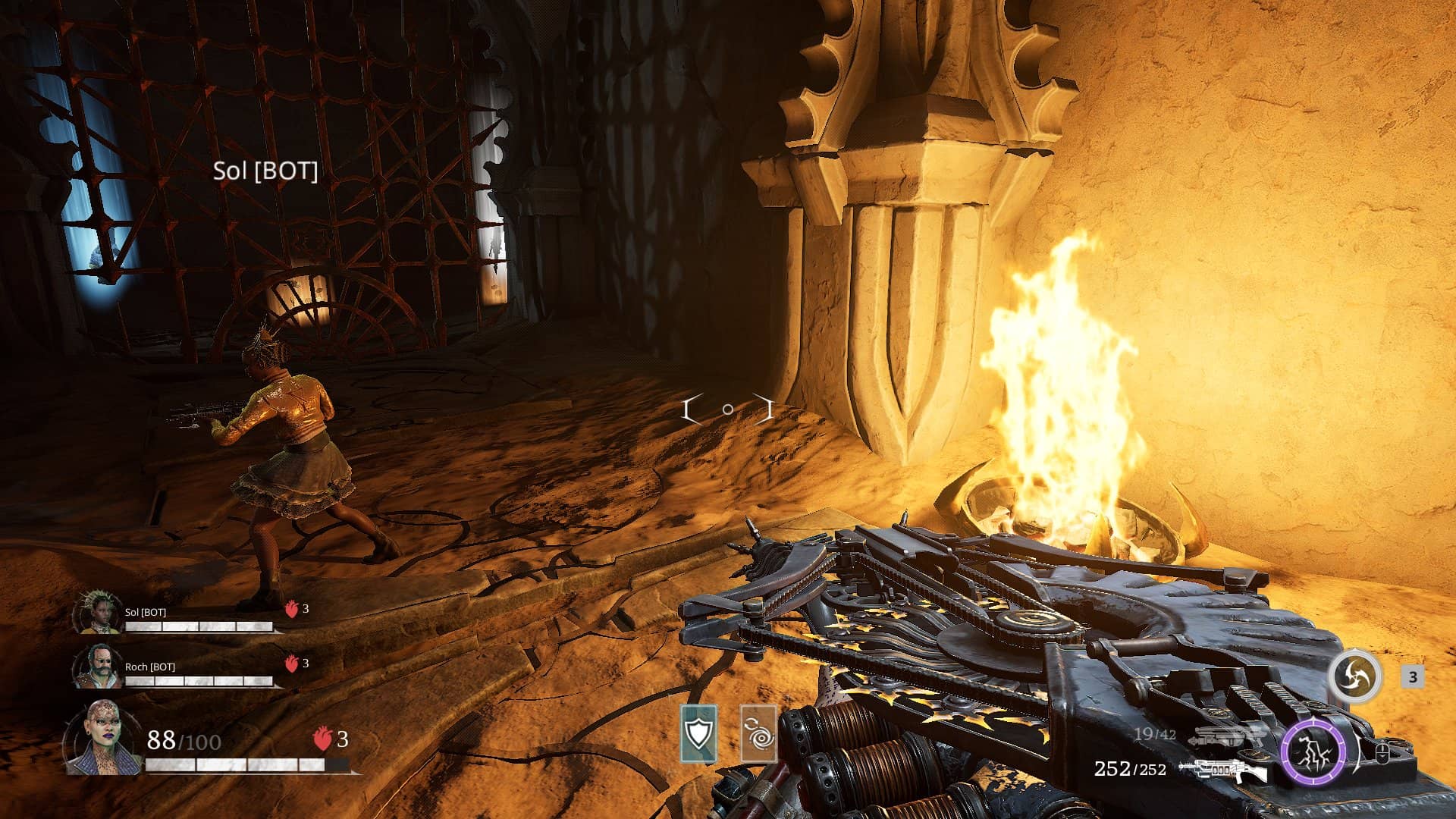 Однако часть визуальных решений вызывает сомнения. Некоторые сцены выглядят слишком ярко, с избыточным свечением, что разрушает ощущение мрака. Освещение часто переэкспонировано, а дым и огонь — чересчур насыщенные, из-за чего теряется читаемость пространства. В кооперативном режиме это особенно заметно, когда несколько игроков используют спецспособности одновременно — экран заполняется эффектами, и ситуация превращается в визуальный хаос.