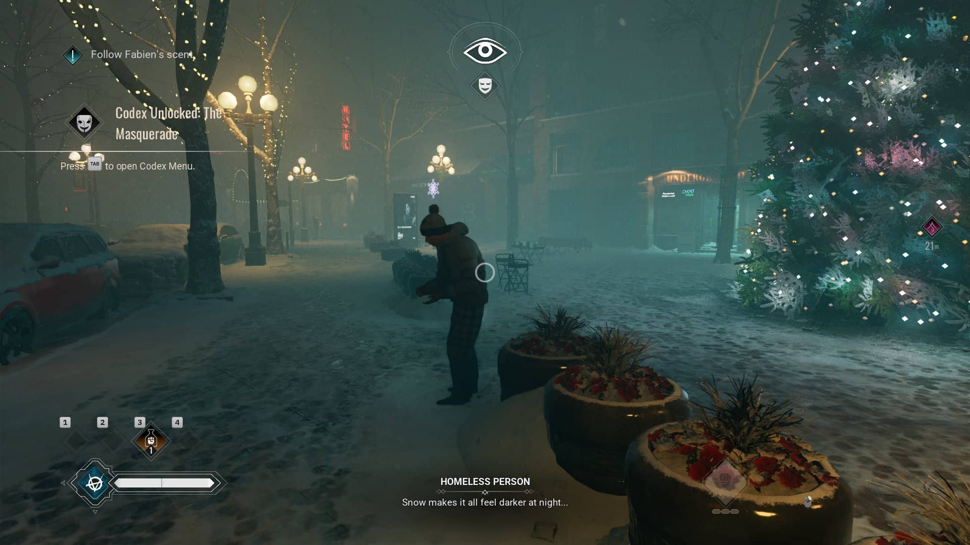 На визуальном уровне Bloodlines 2 выглядит весьма достойно — но не без оговорок. Игра проходит в нео‑ноирной версии Сиэтла, зимой, под снегом и в условиях суровой адаптации под вампирскую тему. Архитектура города стилизована: высокие здания, неоновые вывески, тени, рассвет‑сумерки и снегопад создают атмосферу одиночества и опасности. Детализация текстур, одежды персонажей, материалов окружения — всё на хорошем уровне: кожа, ткани, металл, кровь — всё выглядит слажено.